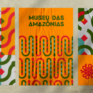 A criação de sua identidade visual foi orientada pelo entendimento de que não existe uma única Amazônia, mas muitas — diversas em culturas, línguas, rios, modos de vida e formas de conhecimento. Criamos o conceito e a marca gráfica entendendo que a mesma precisava ser plural, inclusiva, simbólica e estratégica, capaz de representar essa complexidade sem reduzi-la, e tendo em mente os desdobramentos necessários para a concretização do Museu, como por exemplo, em sua sinalização.