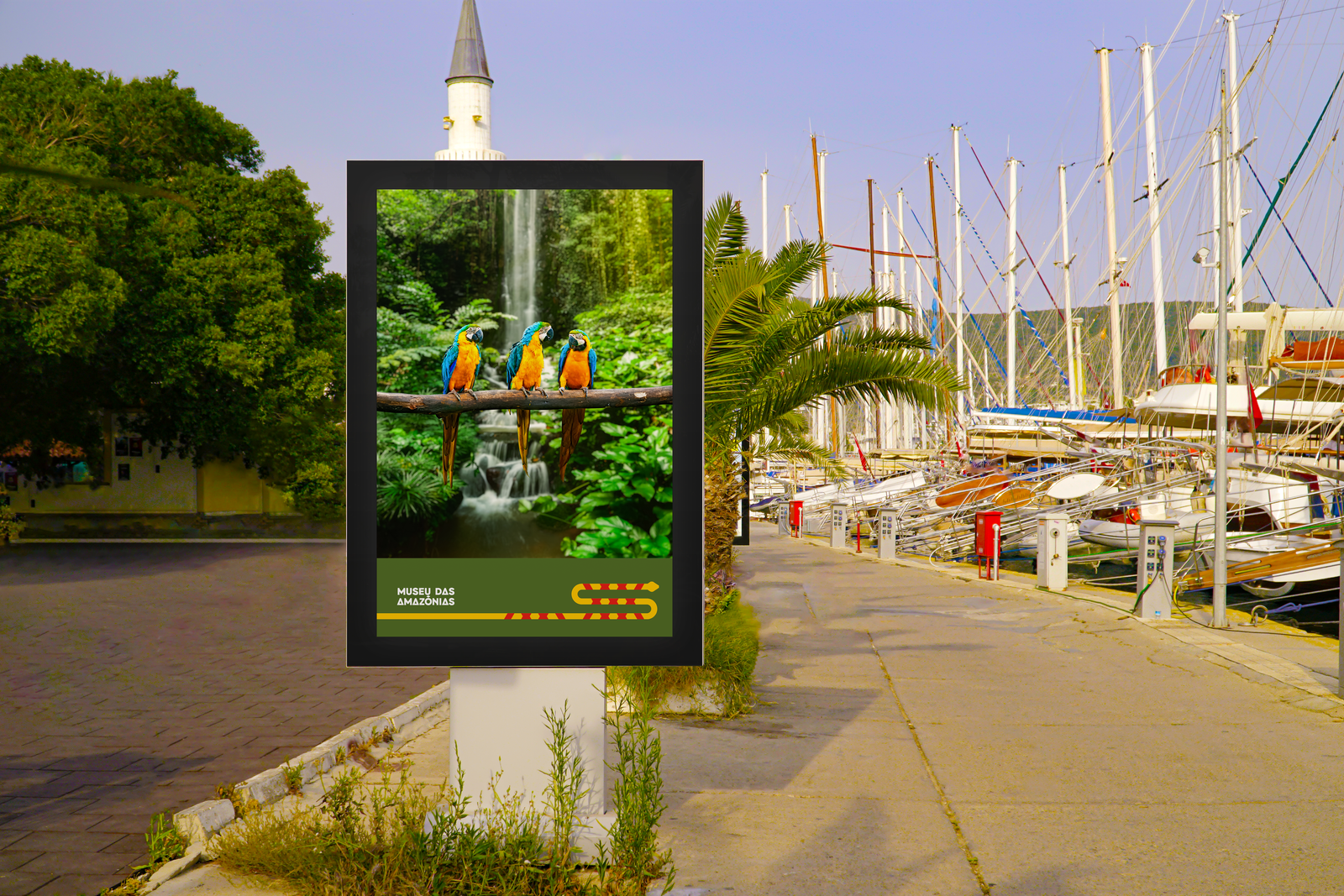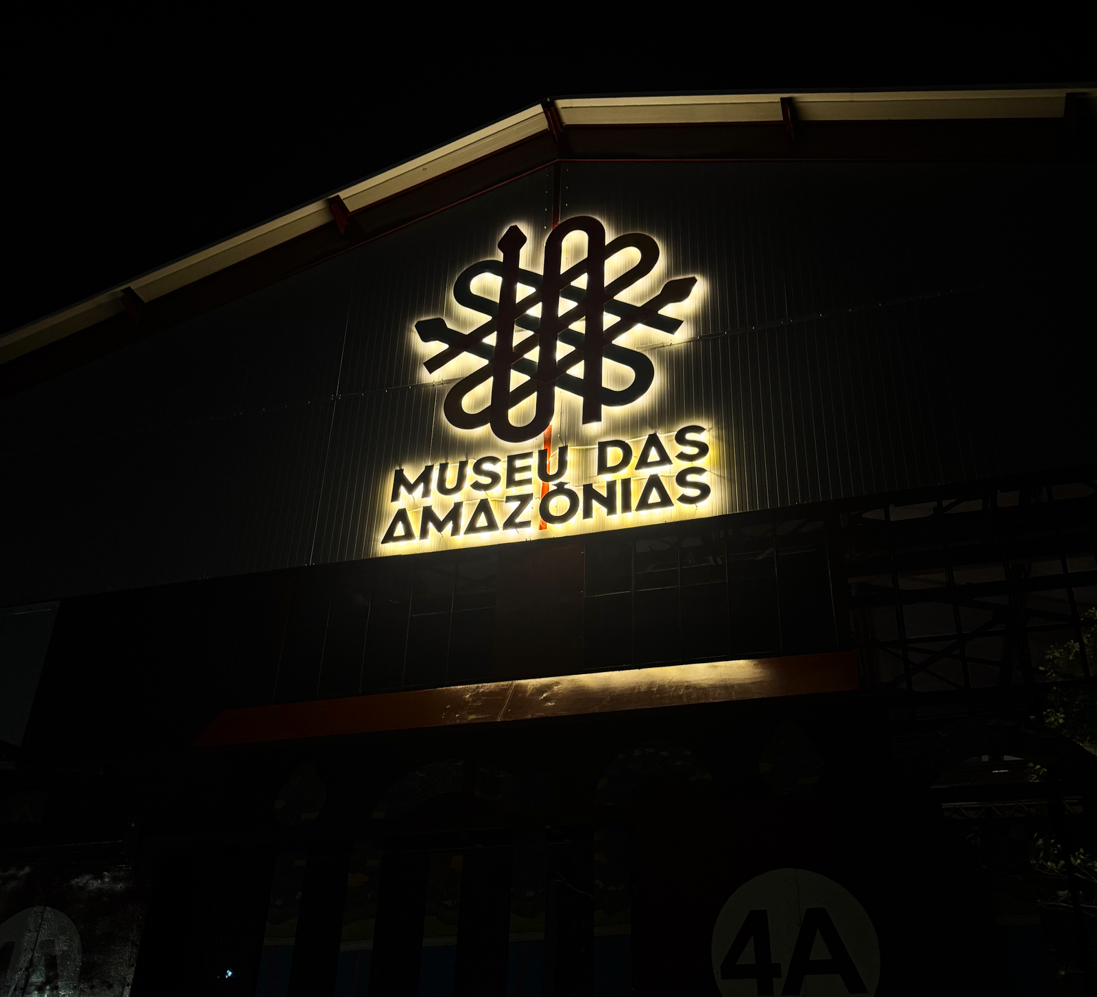 A criação de sua identidade visual foi orientada pelo entendimento de que não existe uma única Amazônia, mas muitas — diversas em culturas, línguas, rios, modos de vida e formas de conhecimento. Criamos o conceito e a marca gráfica entendendo que a mesma precisava ser plural, inclusiva, simbólica e estratégica, capaz de representar essa complexidade sem reduzi-la, e tendo em mente os desdobramentos necessários para a concretização do Museu, como por exemplo, em sua sinalização.